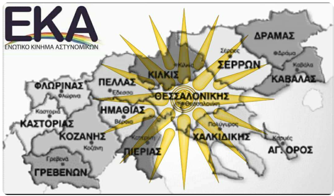 «Το Ενωτικό Κίνημα Αστυνομικών -ΕΚΑ- εκφράζοντας πανελλαδικά χιλιάδες Έλληνες Αστυνομικούς, στην παρούσα χρονική στιγμή, ως ενεργή συλλογικότητα- κίνημα Ελλήνων εργαζομένων και πιστό στις αξίες και στις αρχές που το ίδρυσαν, οφείλει να δηλώσει παρόν και αντίθετο σε κάθε μορφή και προσπάθεια ξεπουλήματος της ΜΑΚΕΔΟΝΙΑΣ.