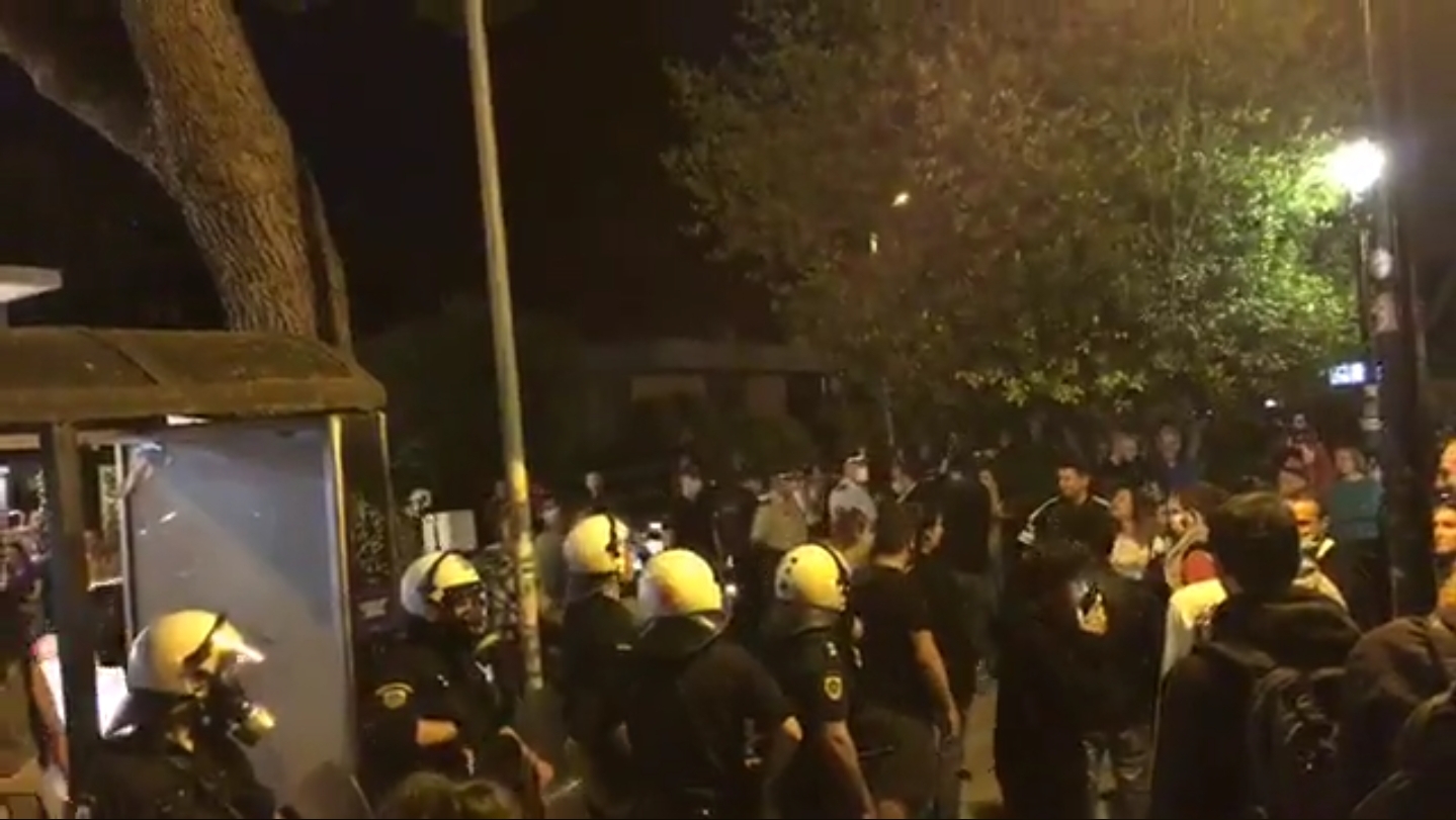 Στο χώρο έχει αναπτυχθεί αστυνομική δύναμη, με τους συγκεντρωμένους